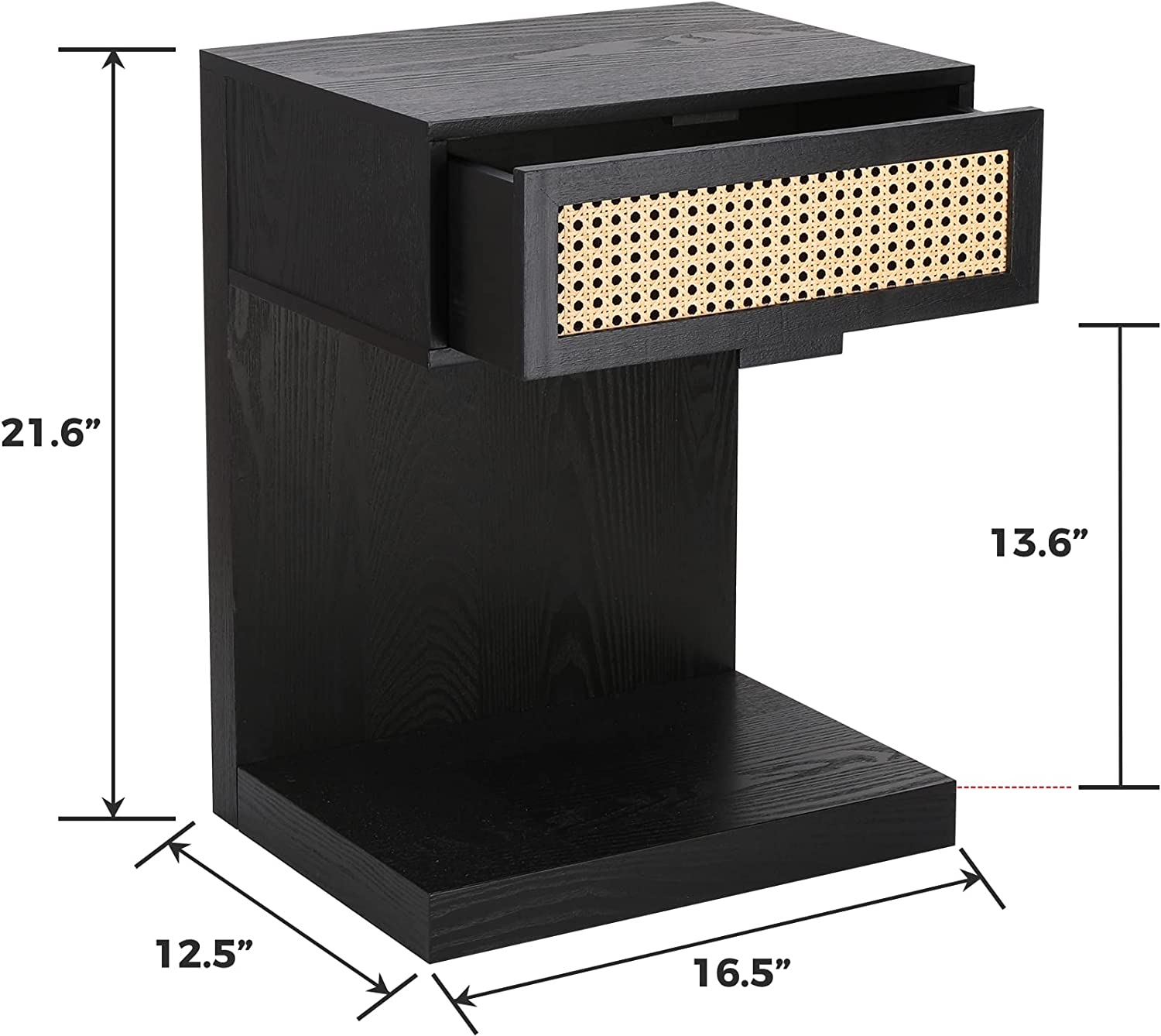 - 【MODERN BLACK NIGHTSTAND】– The rattan night stand brings a stunning bohemian look to your home that is completed with beautiful cane wicker accents. This handcrafted boho nightstand is the perfect companion to any living space with its drawer and cabinet space for storing and organizing your clutter. Blending seamlessly with your existing decor, this accessory brings a perfect amount of stylish function and carefree aesthetics to your bedside.