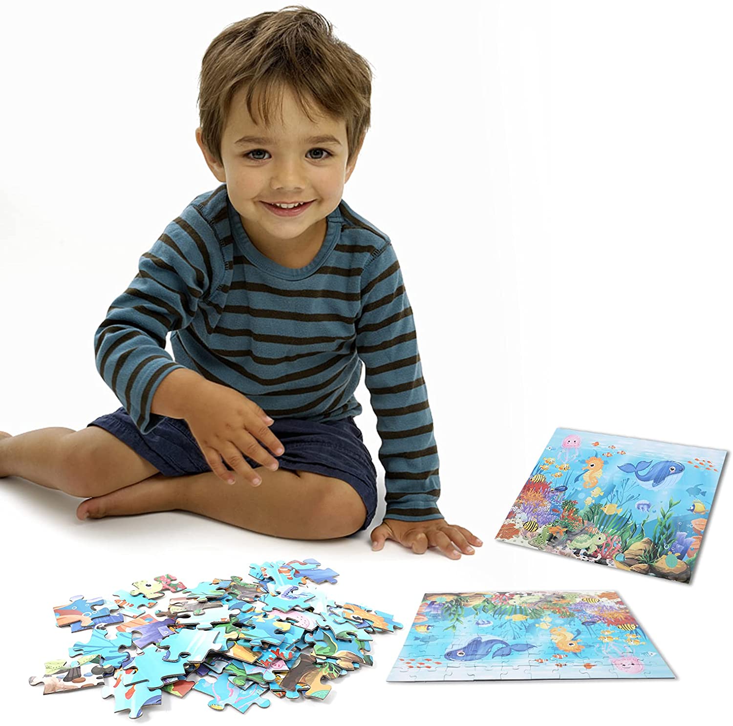 - 【Great Jigsaw Puzzle Kit】: Our undersea world jigsaw puzzle kit has timeless appeal for kids of all ages. Top Bright 100 piece puzzles for kids ages 4-8 uses fine slicing techniques. Smooth edge comes without burrs and will not hurt your little ones’ hands. An exquisite puzzle set, best gift for kids age 4-8
